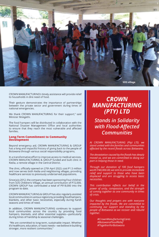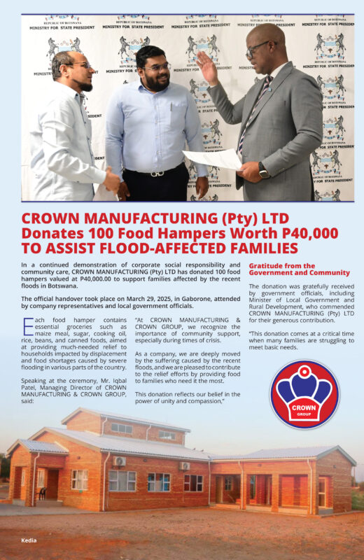 CROWN MANUFACTURING (Pty) LTD Donates 100 Food Hampers Worth P40,000 TO ASSIST FLOOD-AFFECTED FAMILIES